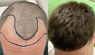 • Сразу после процедуры результат уже заметен: пересаженные фолликулы выступают над поверхностью кожи, и видно новые точки роста.